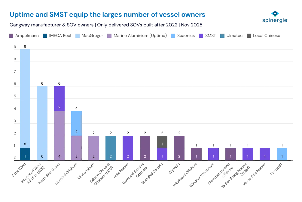 There are some companies, such as Barge Master and Safeway, that are no longer active in the SOV gangway market. They last delivered equipment in 2017 and 2021 respectively.
