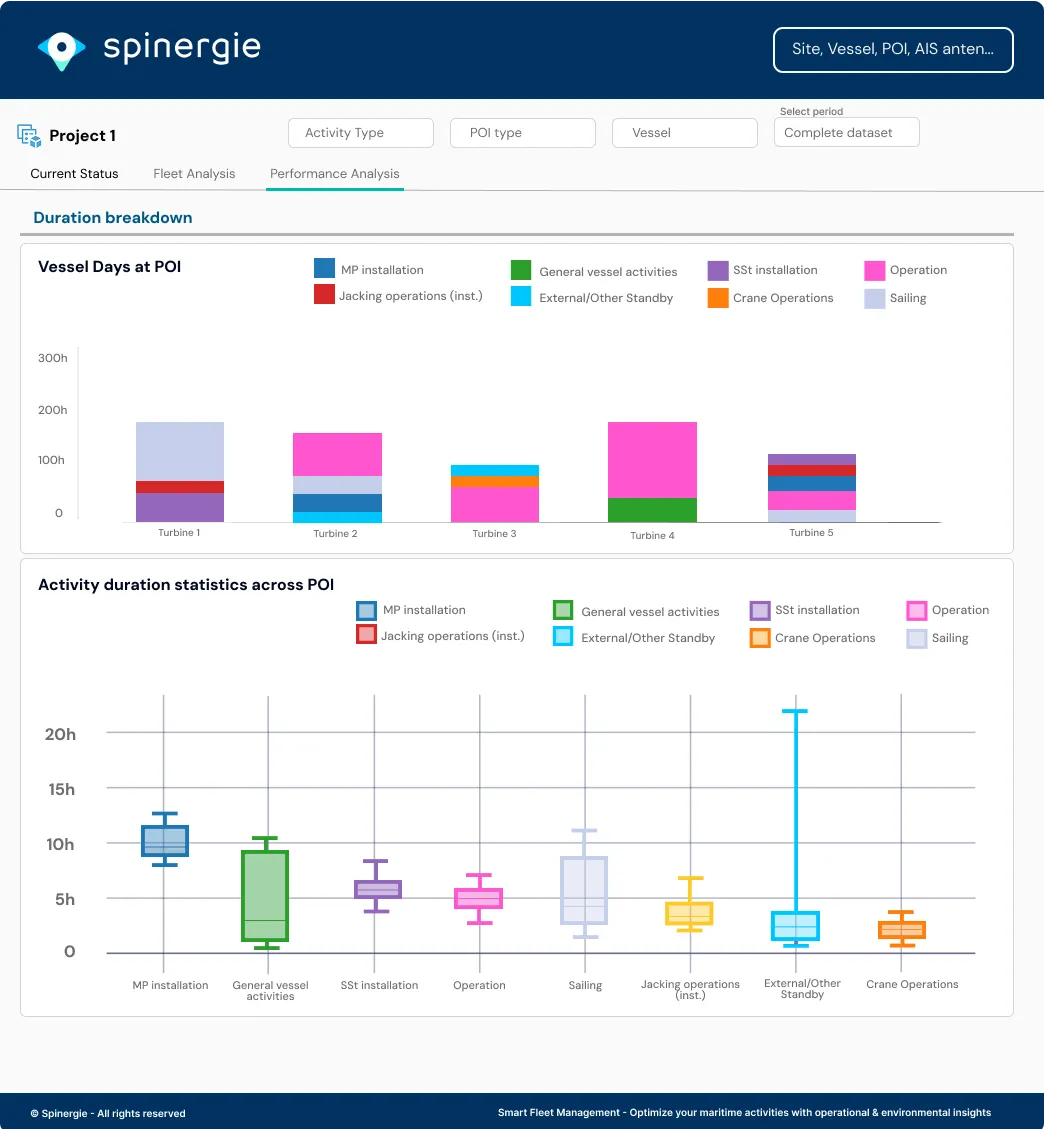 As part of Smart Fleet Management (SFM), Spinergie's Project Tracking module is designed to help developers, operators and contractors better understand offshore project progress, take swift action to alleviate delays, and devise strategies around lessons from previous projects.