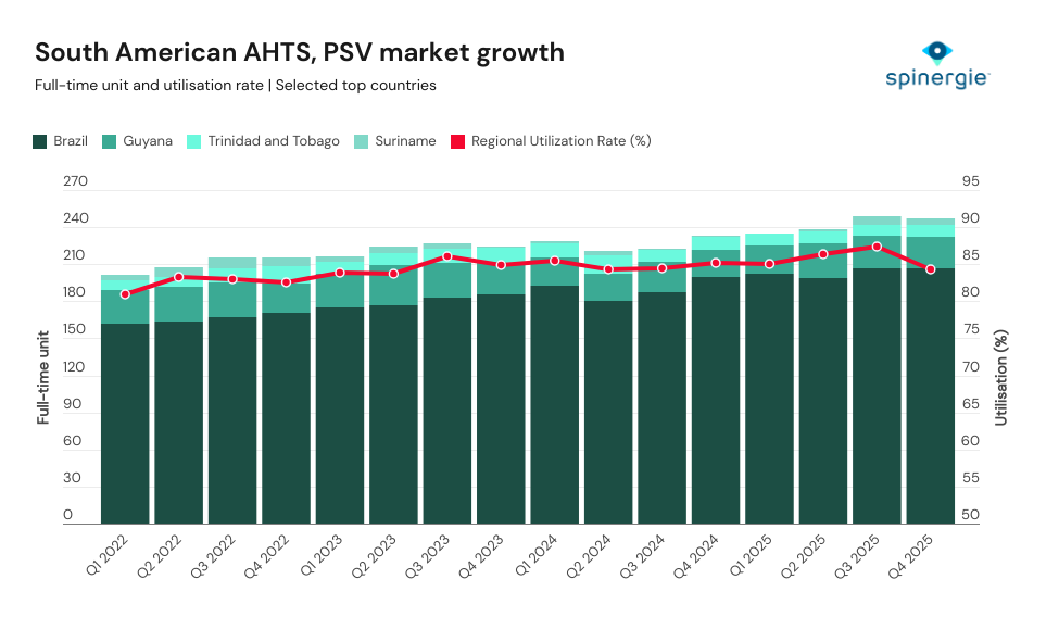 The South American AHTS and PSV market has recently been categorised by steady fleet expansion and consistently high utilisation. This has demonstrated the structural strength of offshore activity in the region.